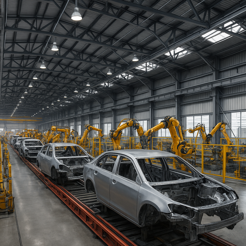 Wiodące koncerny motoryzacyjne w Europie i na świecie wdrażają stalowe hale o powierzchniach od kilku do kilkunastu tysięcy metrów kwadratowych. Zastosowanie zaawansowanych rozwiązań konstrukcyjnych oraz ścisła integracja z systemami zarządzania produkcją przyczyniają się do zwiększenia efektywnośći całego procesu wytwarzania.